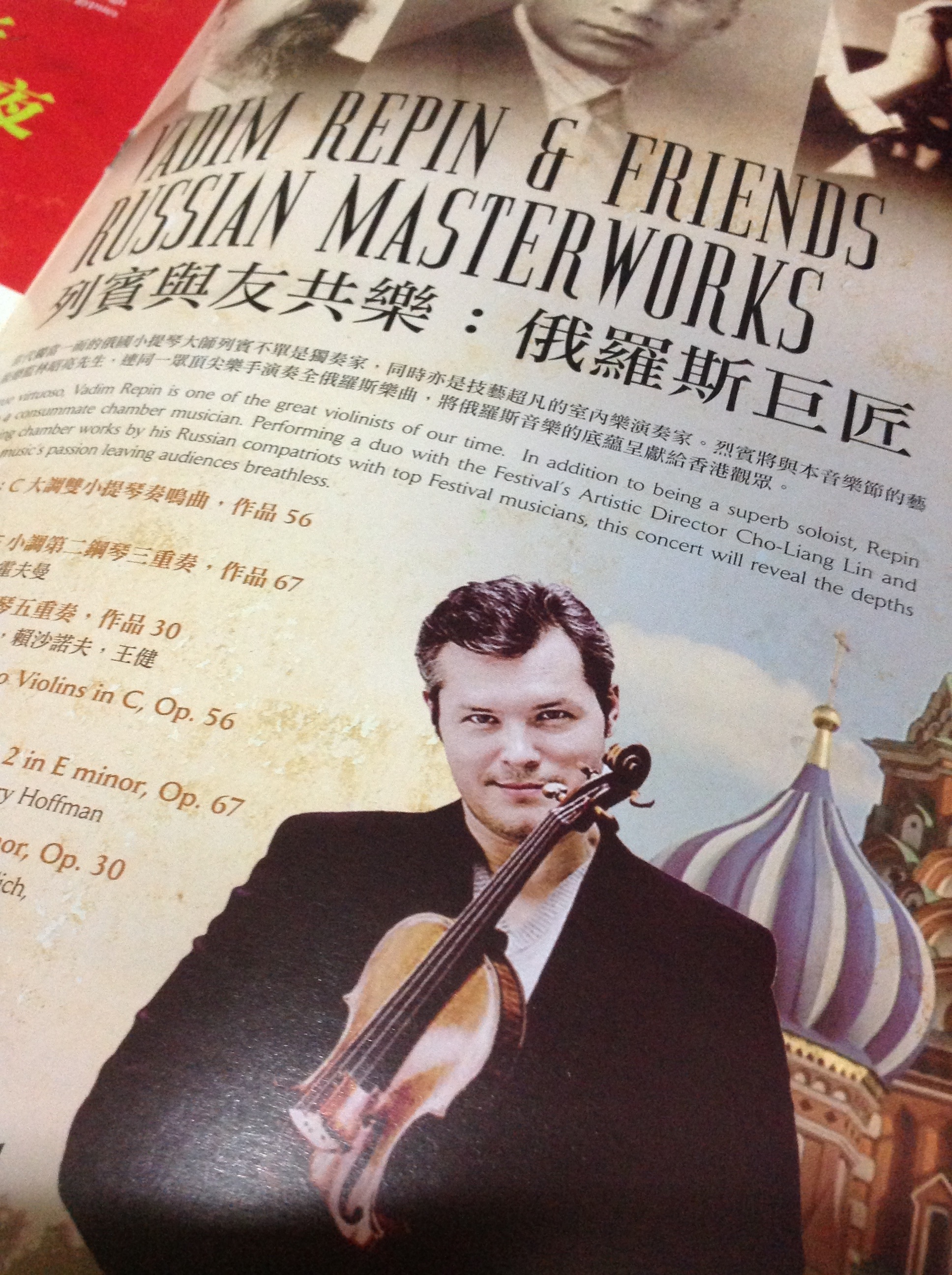 認識Repin,是為學生年代某次聽港樂音樂會,Repin臨時頂替Pekka Kuusisto演奏西貝流士,驚為天人。今日再見……嘩,幹嘛白髮蒼蒼,架著土氣眼鏡,一副大叔模樣?@@