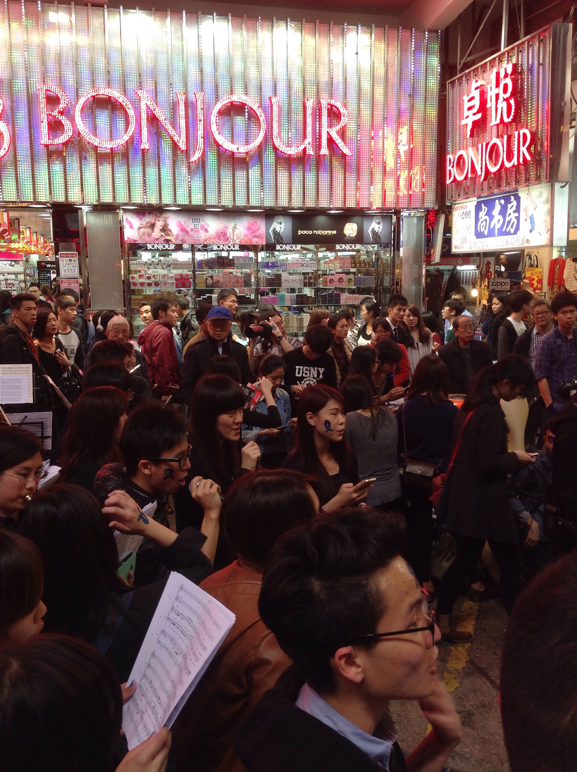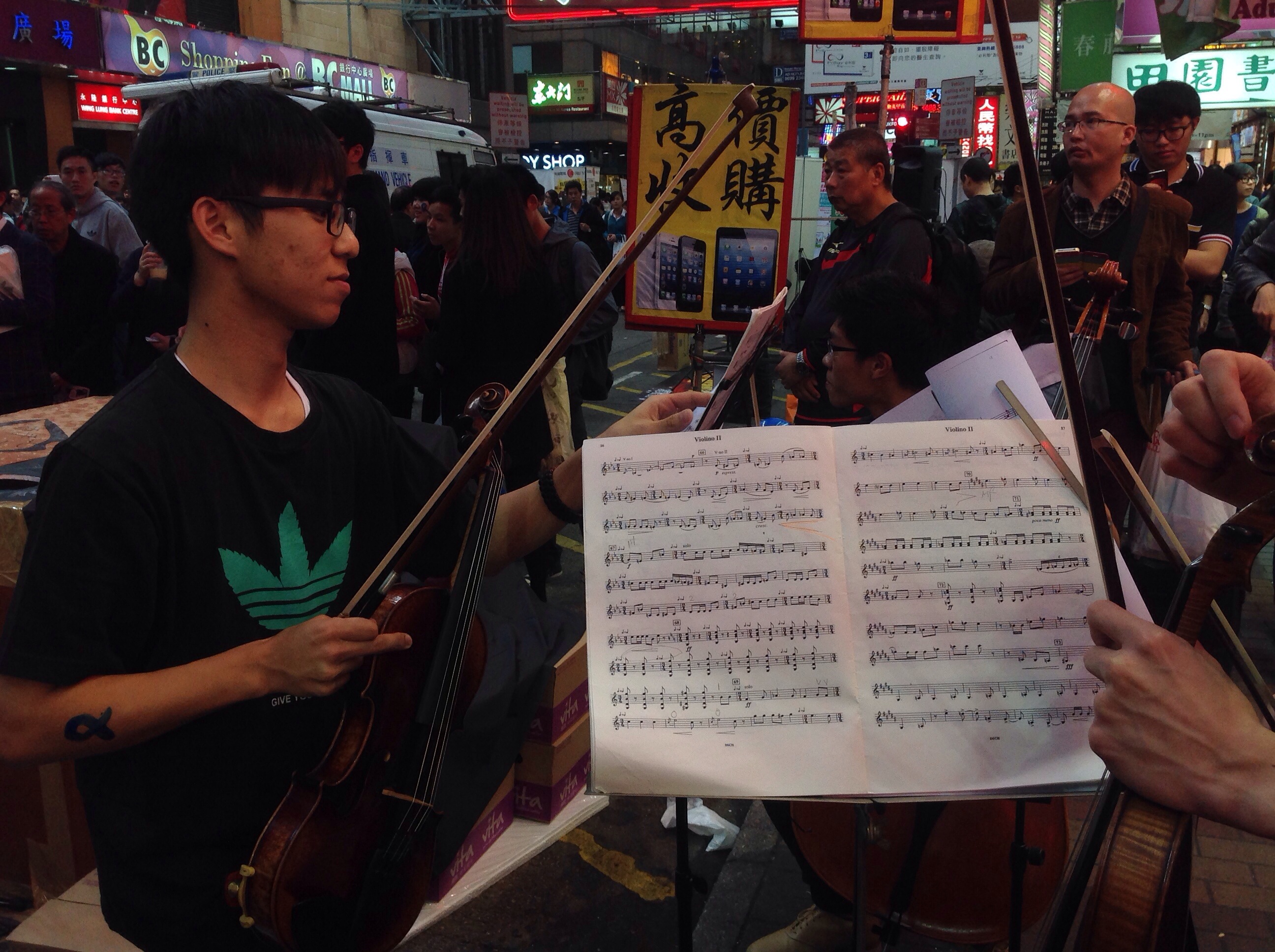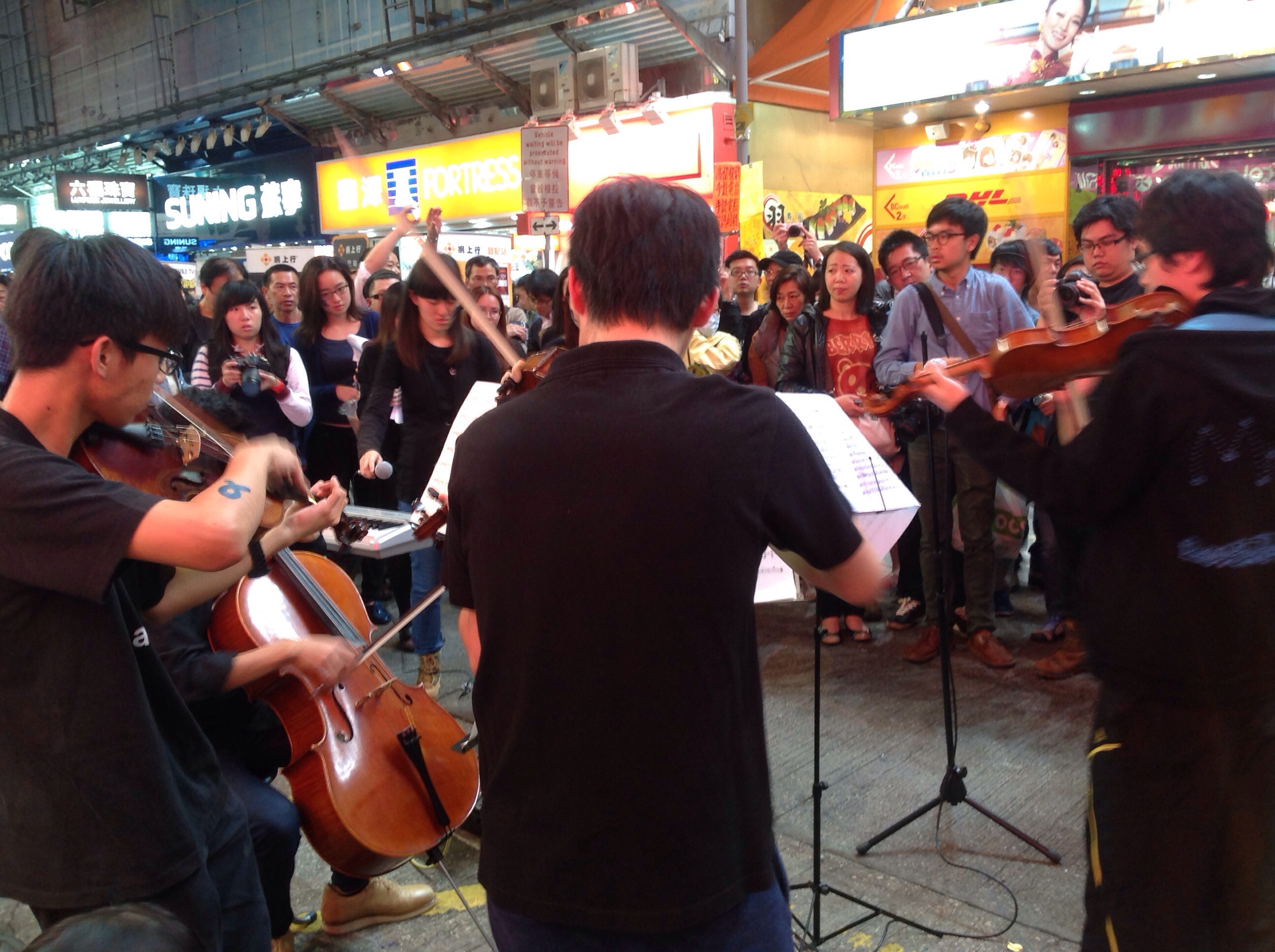 星期五收到通知,說中大新傳系集結了中大及浸大音樂系學生,星期六走上街頭,以音樂號召市民聲援劉進圖,參加星期日的遊行。就在西洋菜南街上,唱起《Do You Hear the People Sing》,甚至奏起蕭斯達高維契的弦樂四重奏—音樂與政治,從來就是密不可分。主辦的同學們也拼盡全力,雖有不足但仍能即時反應及補救,足見熱誠。見到中大音樂系的麥淑賢教授也參與支持,也見師生同心,令人欣慰。