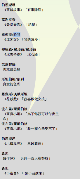 至於《Flower Drum Song》不譯《花鼓歌》、《On the Town》不譯《錦城春色》,年紀不夠老而我本不是音樂劇迷,也不敢說是否中港台譯之不同了。