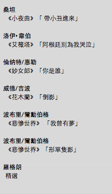 人名訪面,Andrew Lloyd Webber一貫港譯「萊特韋伯」現在成了「洛伊韋伯」也算了,最妙的是Claude-Michel Schönberg成了「爾勳伯格」?「爾」從何來?我Google了「爾勳伯格」,第一個結果是Wikiepda的「克勞德-米歇爾·勳伯格」,茅塞頓開。