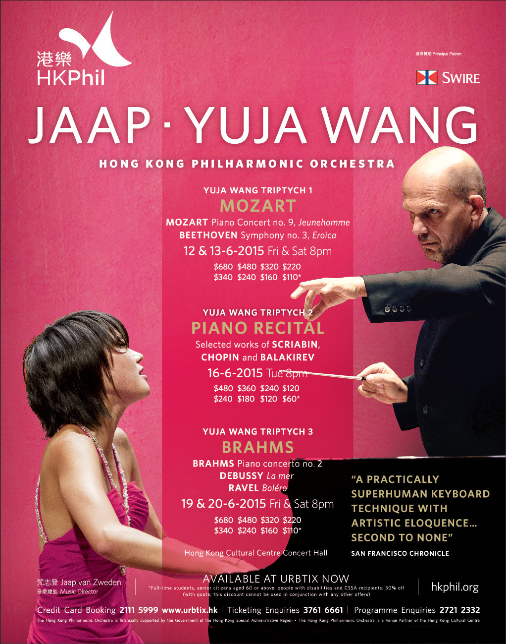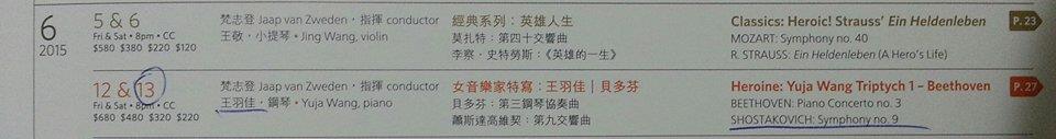 樂壇上炙手可熱的中國鋼琴家王羽佳今次訪港的三場音樂會(兩場協奏曲,一場獨奏會),是港樂2014/15樂季「女音樂家特寫」系列的一大重點。當中6月12及13日的第一場音樂,去年4月推出的樂季小冊子寫道,那場音樂會標題是《王羽佳|貝多芬》,曲目是貝多芬第三鋼琴協奏曲以及蕭斯塔高維契的第九交響曲,有關新樂季的官方新聞稿更特別強調如下:「其他星光熠熠的巨星亦於隨後與梵志登同台演出……以及王羽佳的貝多芬第三鋼琴協奏曲(2015年6月12及13日)和布拉姆斯第二鋼琴協奏曲(2015年6月19及20日)。」預購截止,不少樂迷都有購入這場音樂會門票,王羽佳吸引是其一,蕭斯達高維契第九也不是這麼常演,而且樂團演奏蕭氏作品都有水準保證!