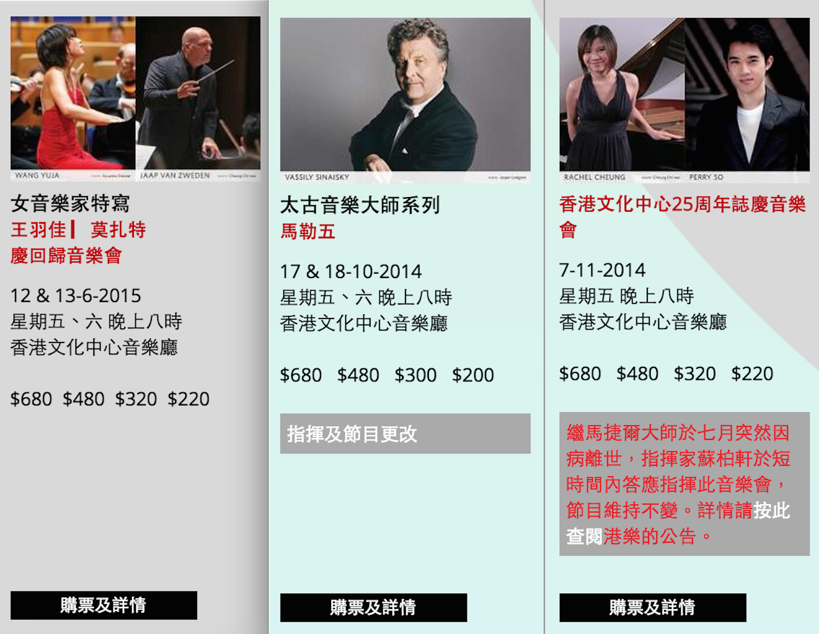 節目更改的原因可以有千千萬萬,港樂也不是沒有經歷過,及早交代,樂迷都會體諒,你偏偏唯一的交代就是那個訂戶不會隨便瀏覽的網頁內那四個小字:「節目更改」,這在節目總表是看不到的,跟季初四場也有異動的節目完全不同規格處理: