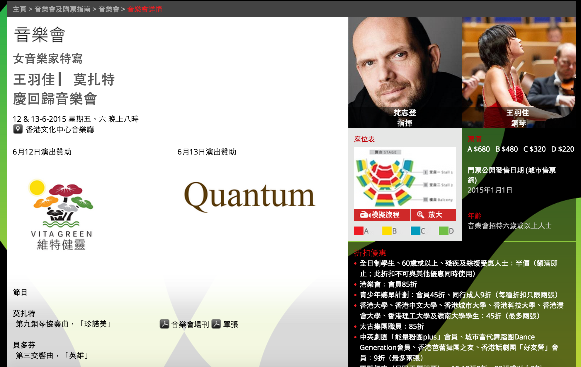 因為得到有新的音樂會贊助(維特健靈及中國開元資產管理),6月8日FB event的音樂會名字更改為《王羽佳|莫扎特-慶回歸音樂會》