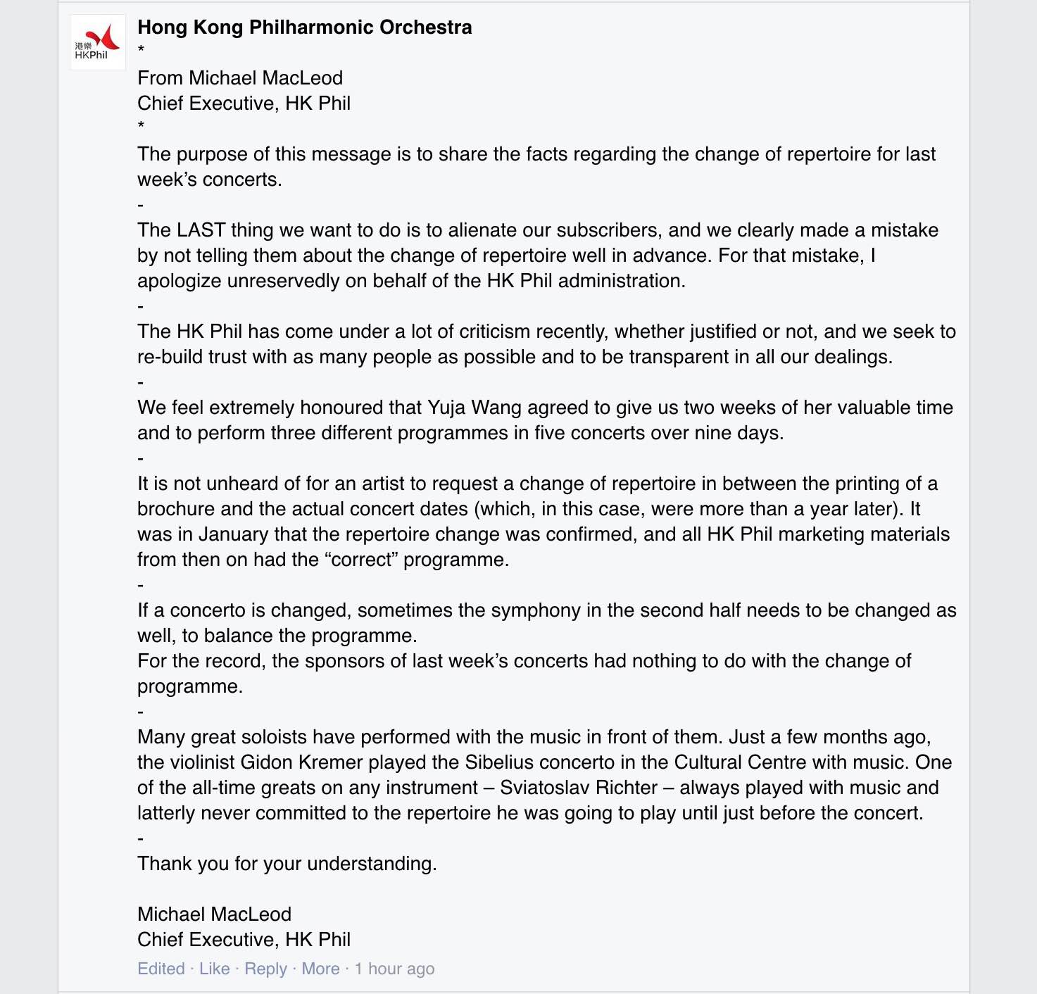所以,最終仍是港樂市場推廣部對更改曲目致誠信於不顧,漠視訂購套票聽眾權益及感受的處理手法,令樂迷極度不滿。