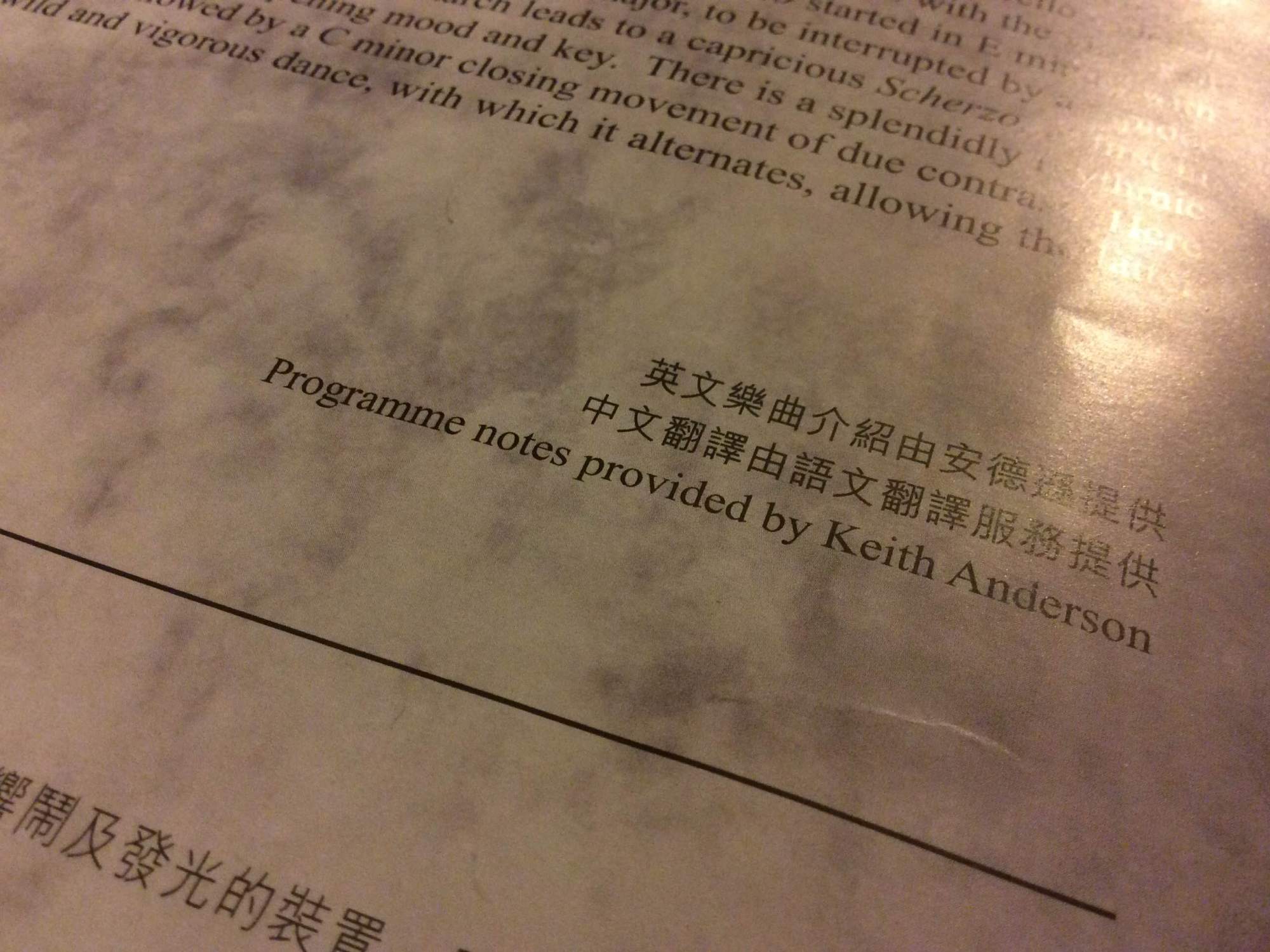 既然投訴了還要連夜出文咁吋?抱歉,因為這實在太緊要:你永遠不會知道一篇錯漏百出的中文樂曲簡介會為多少人帶來多大誤解。這真的要盡力。(雖然我不知道受制於「價低者得」的招標制度下,康文署還可以怎樣找到好的譯者……well……)