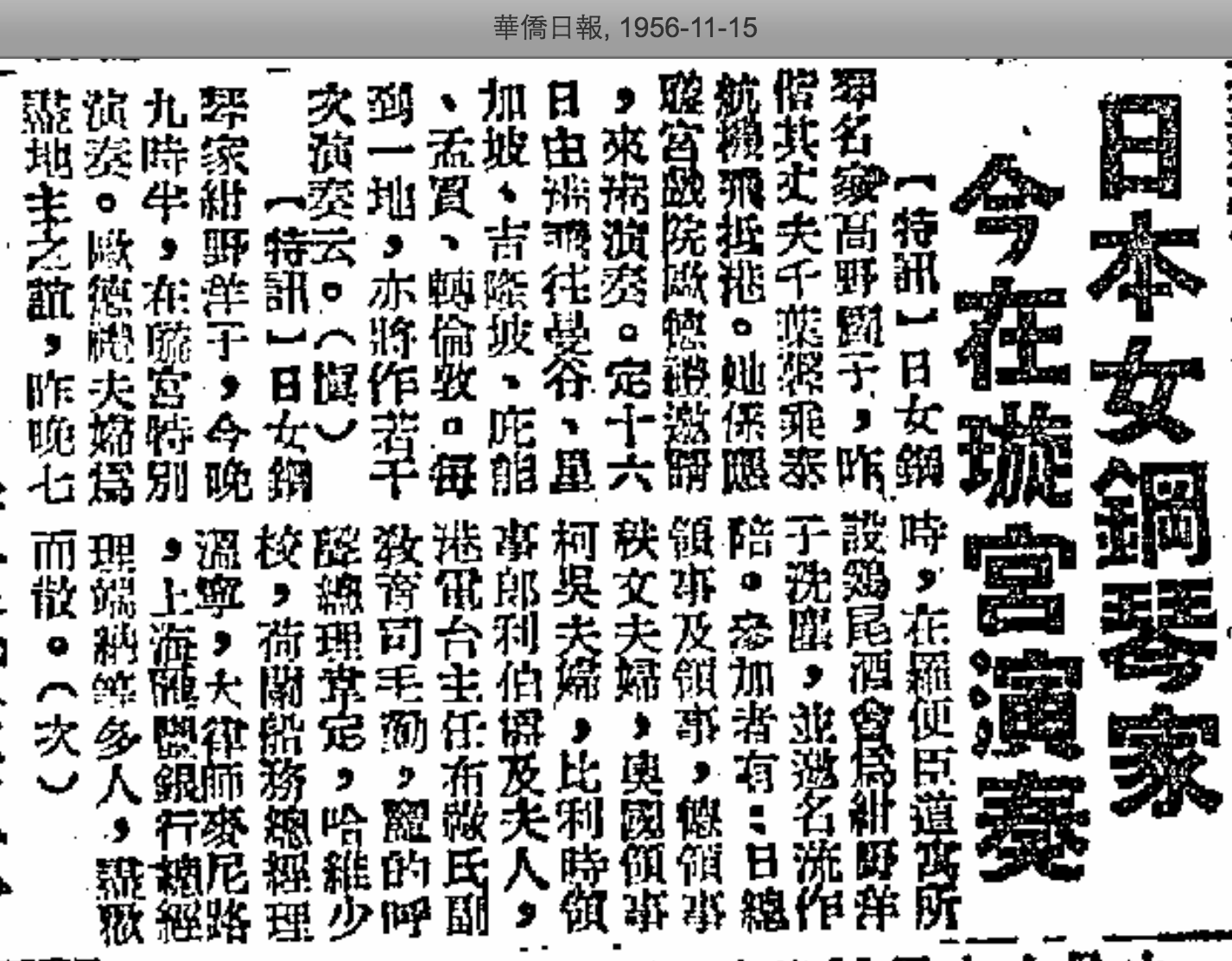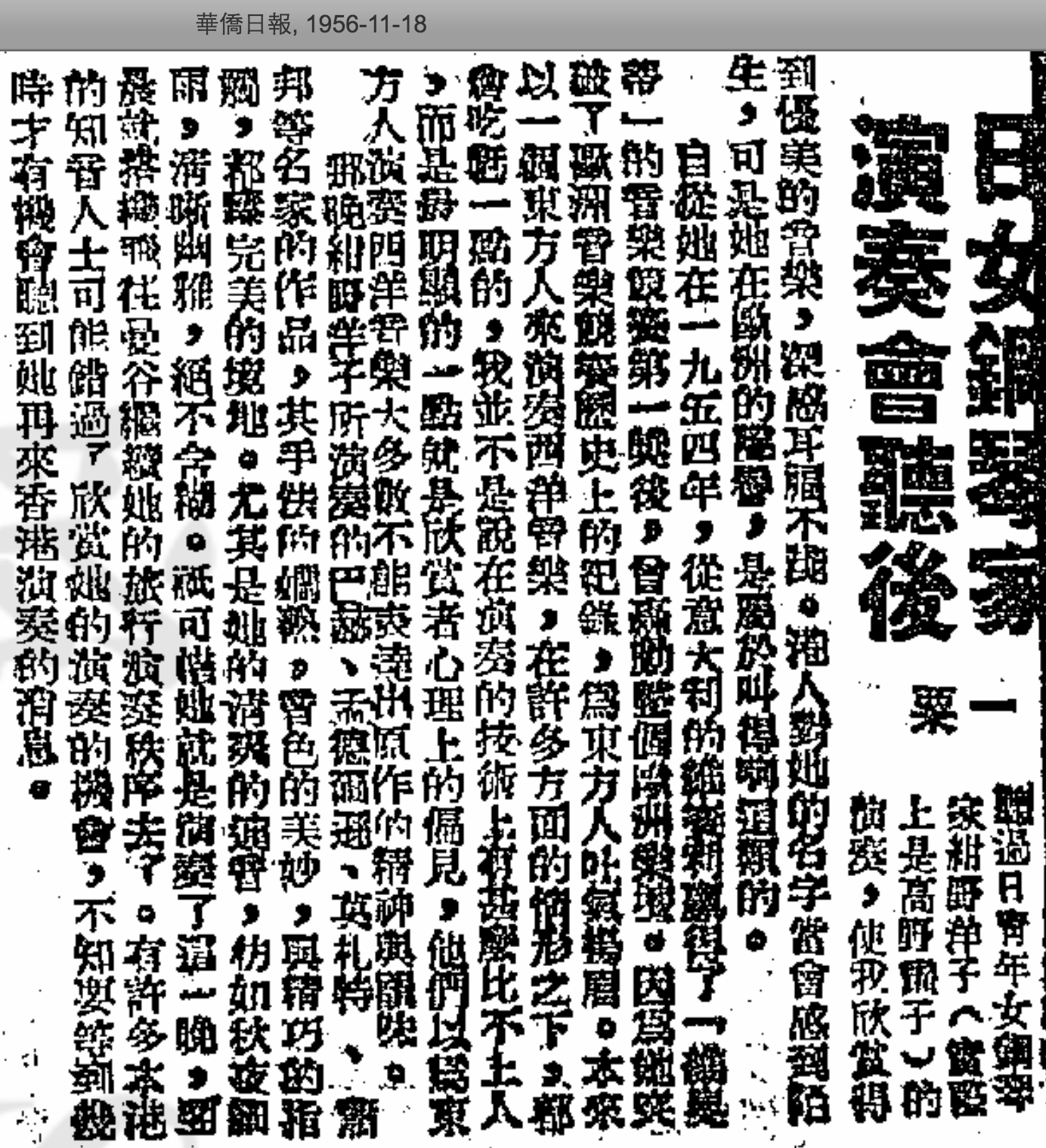 1956年11月15日晚上九時半,高野耀子在璇宮戲院舉行了她的香港首演。
