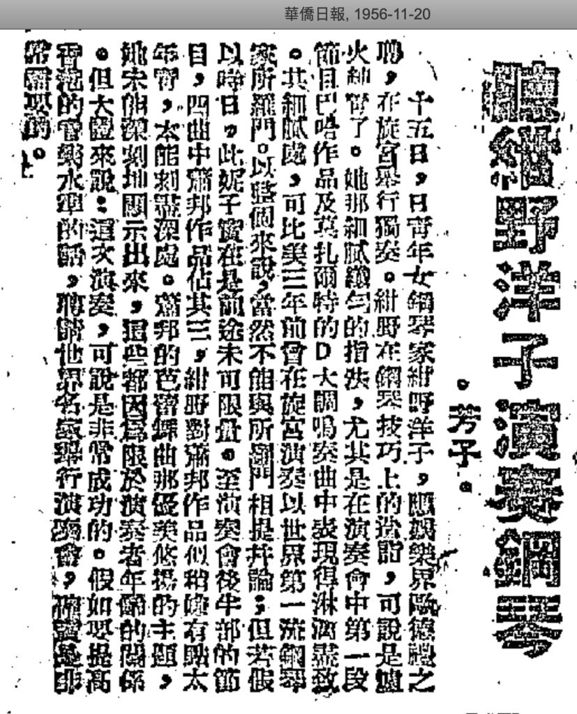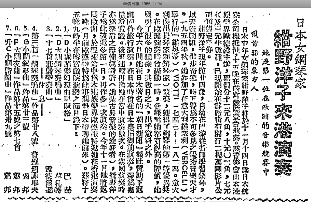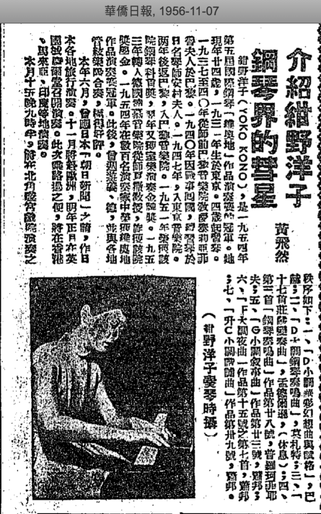 整整64年前的1956年11月15日,一位鋼琴界的明日之星在璇宮戲院(aka 皇都戲院)舉行了她的香港首演。